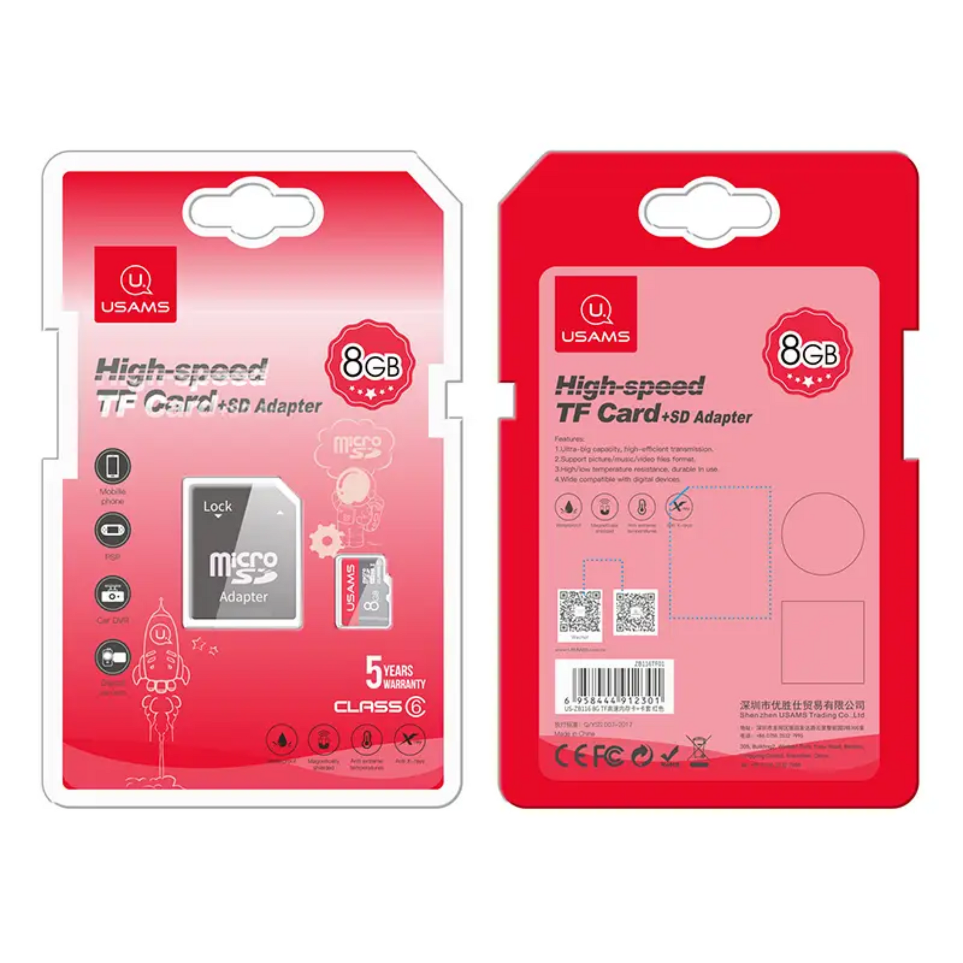 The Usams US-ZB116 8GB MicroSDHC Card offers fast and secure storage with Class 10 speed. Perfect for smartphones, tablets, and cameras, it also includes an SD adapter for broader compatibility and easy file access.